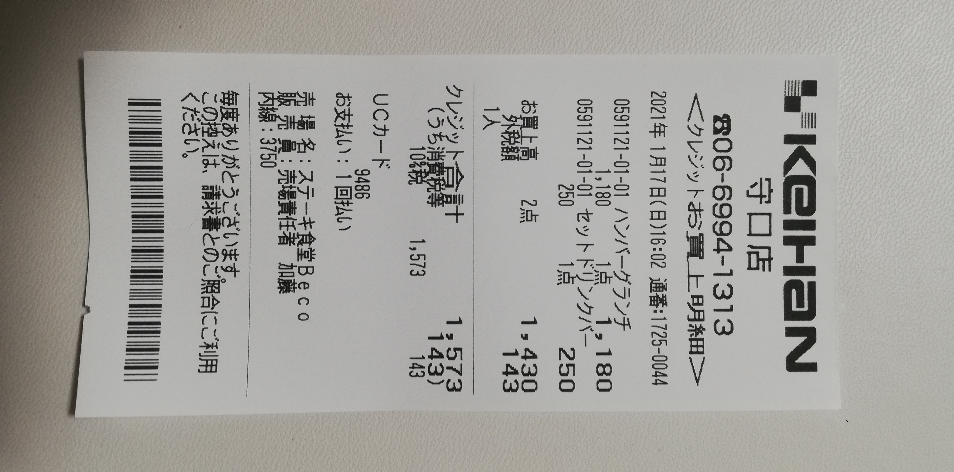 | 2021年1月17日 | pbear | Becoハンバーグランチとドリンクバー | 1,573 |