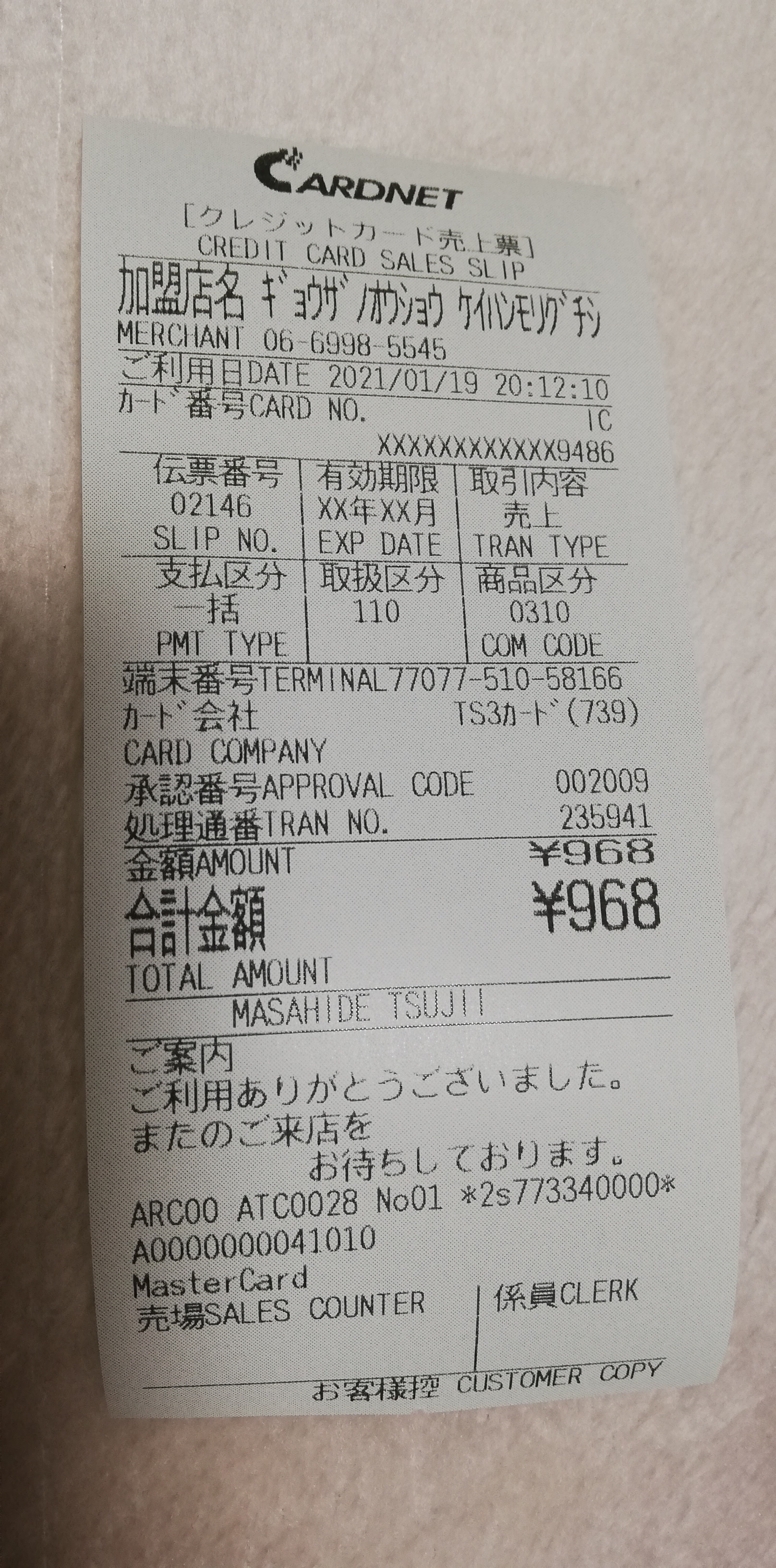 | 2021年1月19日 | pbear | 餃子の王将 | 968 |