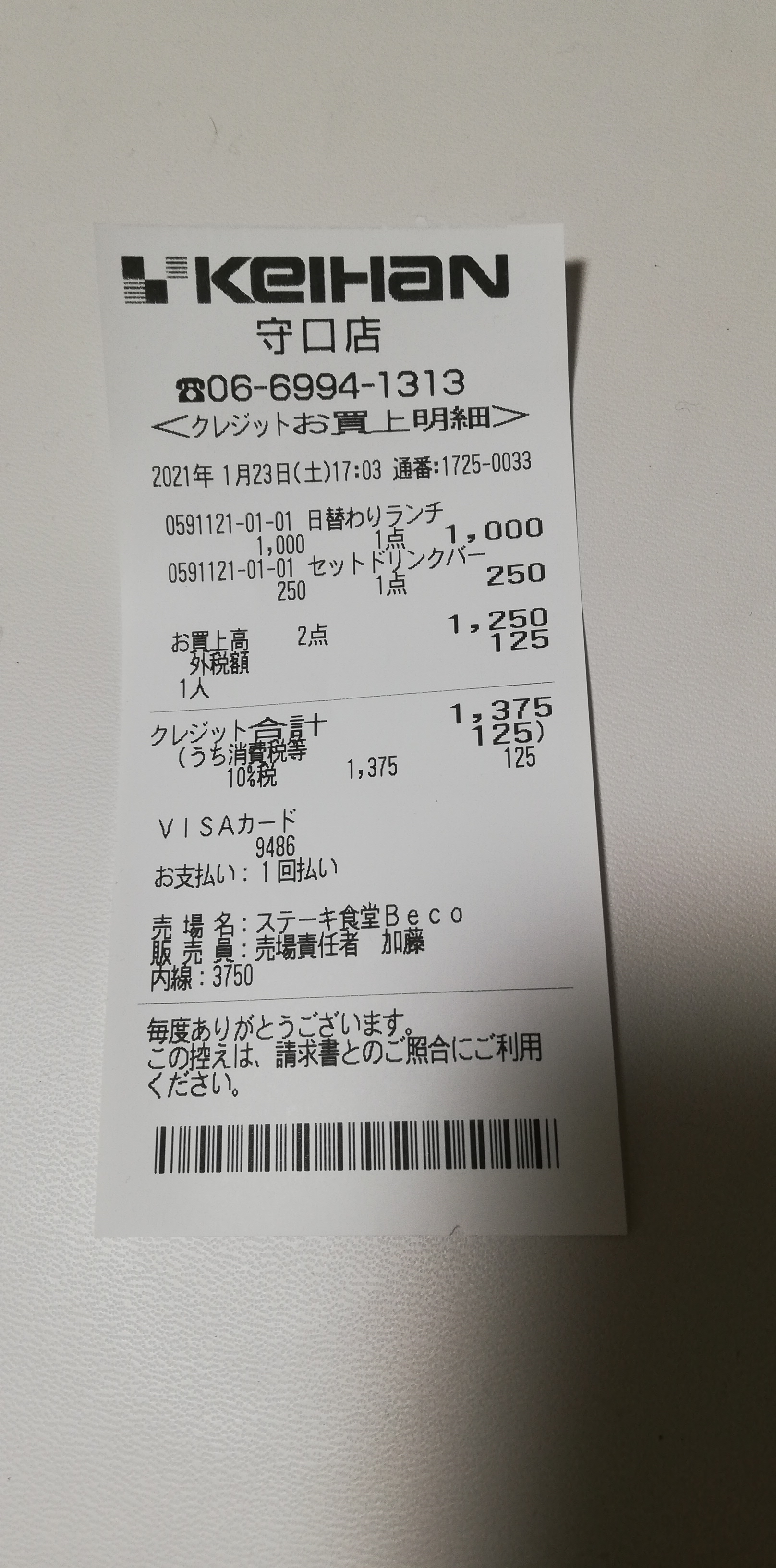 | 2021年1月23日 | pbear | Becoランチとドリンクバー | 1,375 |