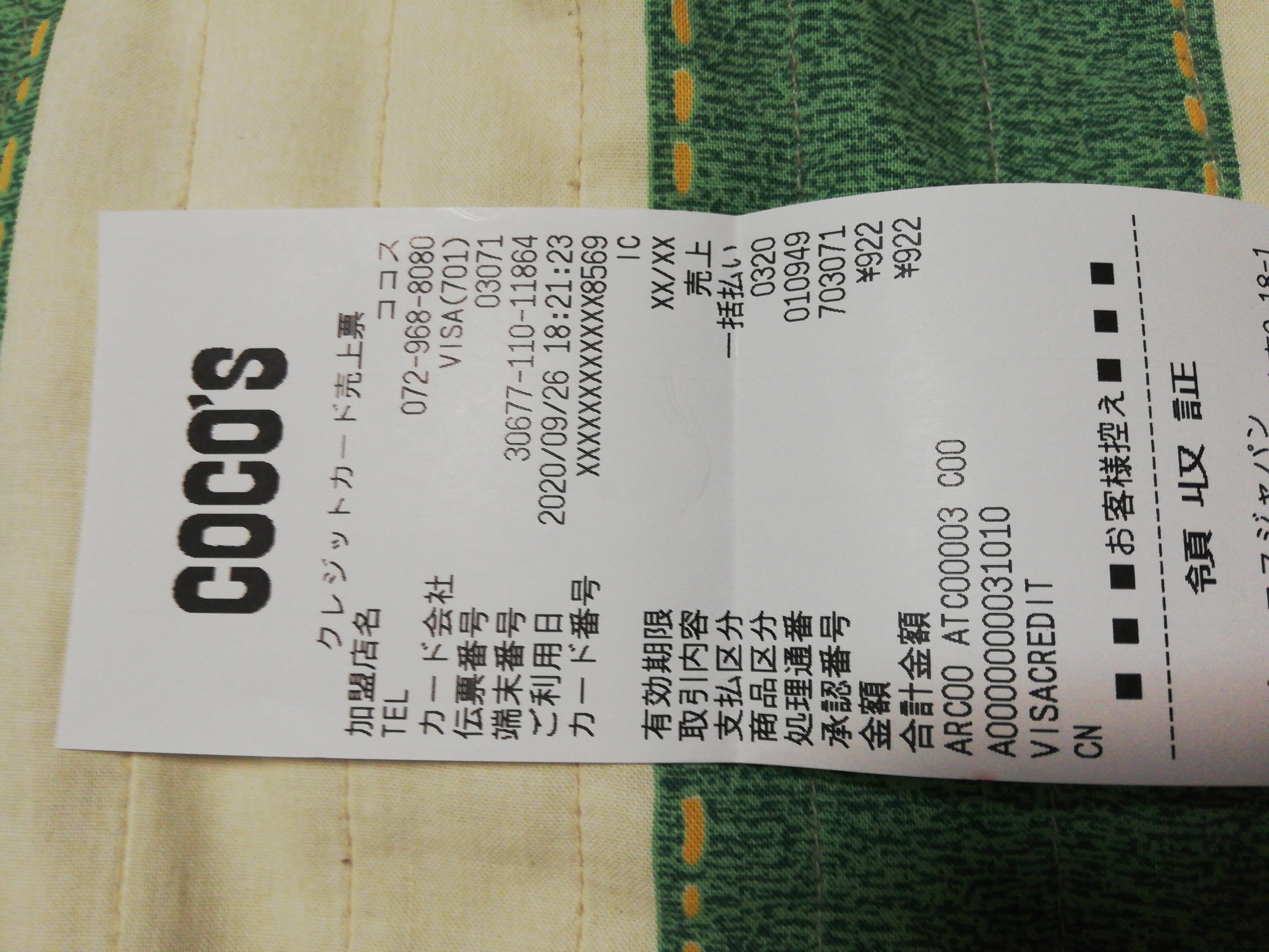 | 2020年10月3日 | pbear | COCO'S | 922 |